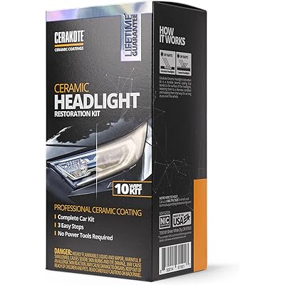 CERAKOTE® Ceramic Headlight Restoration Kit – Guaranteed To Last As Long As You Own Your Vehicle – Brings Headlights Back to Like New Condition - No Power Tools Required - 10 Wipe Kit