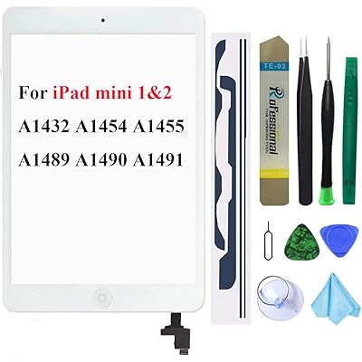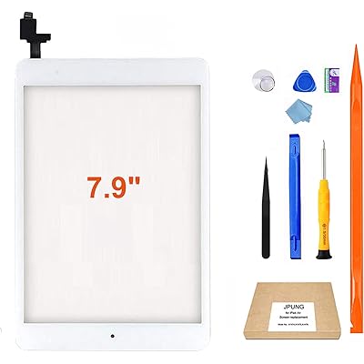 JPUNG for iPad Mini 1/iPad Mini 2 Screen Replacement,A1432 A1454 A1455 A1489 A1490, Touchscreen Digitizer (White), with Home Button, Full Repair Kit