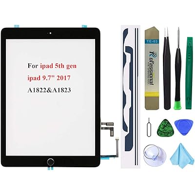 for iPad 5 5th Gen Screen Replacement A1822 A1823 2017 Digitizer 9.7 Inch, for iPad 5th Generation Touch Glass with Home Button, Repair Tool Kit (Black)