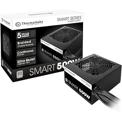 Thermaltake Smart 500W 80+ White Certified PSU, Continuous Power with 120mm Ultra Quiet Cooling Fan, ATX 12V V2.3/EPS 12V Active PFC Power Supply PS-SPD-0500NPCWUS-W