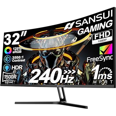 SANSUI 32 Inch Curved 240Hz Gaming Monitor High Refresh Rate, FHD 1080P Gaming PC Monitor HDMI DP1.4, Curved 1500R, 1Ms MPRT, HDR,Metal Stand,VESA Compatible(DP Cable Incl.)