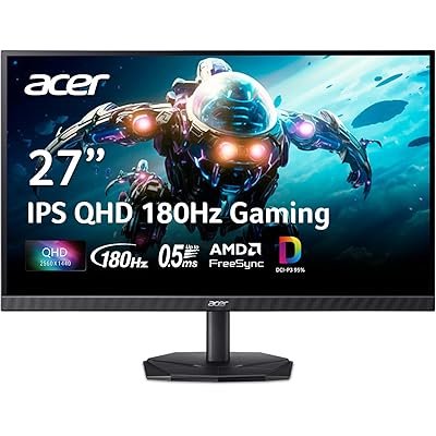acer Nitro 27 Inch QHD 2560 x 1440 IPS Gaming Monitor | AMD FreeSync | Up to 180Hz Refresh | Up to 0.5ms | DCI-P3 95% | HDR 10 Support | One Display Port 1.2 & Two HDMI 2.0 | KG271U N3bmiipx