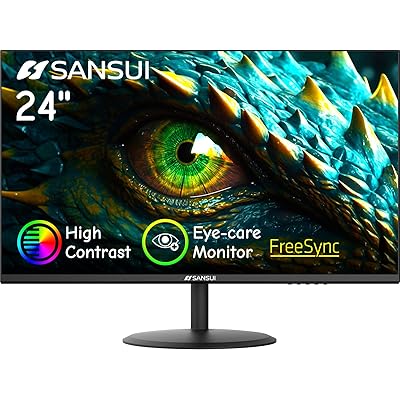 SANSUI Computer Monitor 24 inch Eye Care 1080P Display HDMI,VGA Ports with 178° Viewing Angle/Frame-Less/Tilt/VESA Compatible for Office and Home