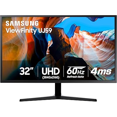 SAMSUNG 32" UJ59 Series 4K UHD (3840x2160) Computer Monitor,VA Panel, HDMI, Display Port, Eye Saver/Flicker Free Mode, FreeSync, LU32J590UQNXZA, Black
