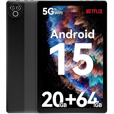 Tablet 10 Inch Android 15 OS GMS Certified Tablets PC 1.8 GHz 5-Core 20 (3+17) GB RAM 64 GB ROM 1 TB Expandable 1280x800 HD IPS Touch Screen 5000 mAh WiFi 6 Bluetooth 5.4 Dual Camera 2025 (Black)
