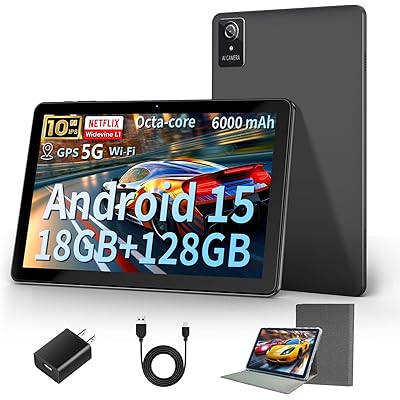 Aobante Tablet 10 Inch, 2025 Android 15 Tablets, 18GB+128GB, 1TB Expand, Widevine L1 Compatible Octa-Core Tablet with WiFi 6, 6000mAh Battery, Dual Camera(5MP+8MP)