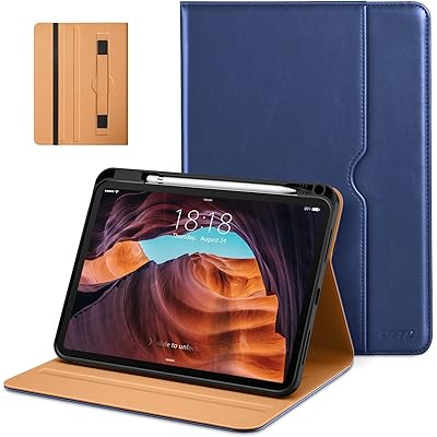 DTTO for iPad (A16) 11th Generation Case 11 Inch 2025, iPad 10th Generation Case 10.9 Inch 2022, Premium Leather Business Folio Stand Cover with Pencil Holder - Auto Wake/Sleep, Navy Blue