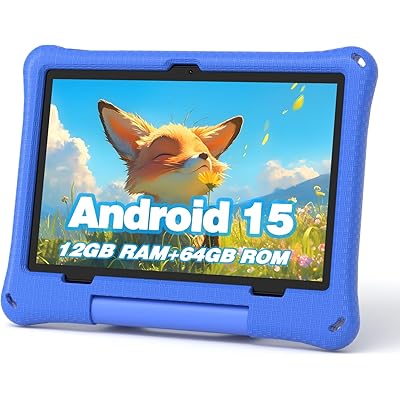 Android 15 Kids Tablet, 2025 Upgraded 10.1 Inch Tablets with Octa-core Processor, 6000mAh Battery, Kid Space, Parental Control,Pre-loaded Kids Apps, 2.4/5GHZ Dual WiFi, Protective Case Included - Blue
