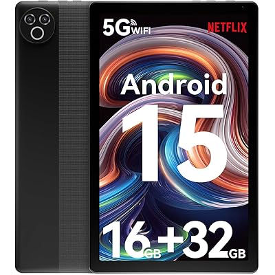 Tablet 10 Inch Android 15 OS GMS Certified Tablets PC 1.8 GHz 5-Core 16 (3+13) GB RAM 32 GB ROM 1 TB Expandable 1280x800 HD IPS Touch Screen 5000 mAh WiFi 6 Bluetooth 5.4 Dual Camera 2025 (Black)