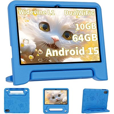 WXUNJA Android 15 Kids Tablet, 2025 Upgraded 10.1 Inch Tablets with Octa-core Processor, 6000mAh Battery, Kid Space, Parental Control,Pre-Loaded Kids Apps, 2.4/5GHZ Dual WiFi, Case Included, Blue