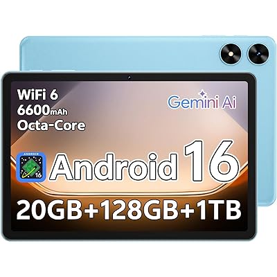 SHARECLOUD Tablet 10.1 inch Android 16 Tablet with Octa-Core Processor, 20GB RAM 128GB ROM 1 TB Expandable, 1280x800 HD IPS Touch Screen, GPS, 8H Battery, WiFi 6, BT 5.2, Dual Camera (Blue)