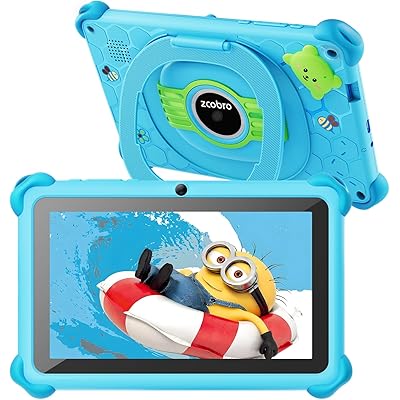 zcobro Kids Tablet Toddler 7 inch Kids Learning Tablet 32GB WiFi Tablets with Shockproof Case, YouTube, GMS, Parental Control, Dual Camera for Boys Girls Preinstalled Educational Games, Blue
