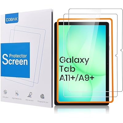 CoBak 2-Pack Tempered Glass Screen Protector for Samsung Galaxy Tab A11 Plus (A11+) 2025 / Tab A9 Plus (A9+) 2023 11-inch, Installation Frame, 9H Hardness, Anti-Scratch