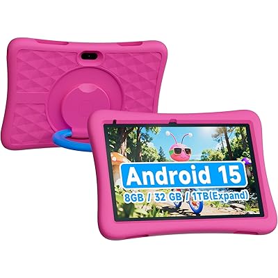 ZZB Kids Tablet 10 Inch, Android 15.0, 8GB (3+5 Extended) RAM, 32GB ROM (Expandable to 1TB), Dual Camera, 6000mAh, Preloaded with Kid-Friendly Apps, Tablet with Case,Android Tablets for Kids (Pink)