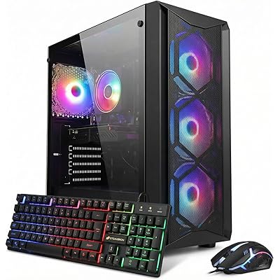 STGAubron Gaming PC Computer Desktop, Intel Core i5 up to 3.6G, Radeon RX 550, 16G RAM, 512G SSD, WiFi 6, BT 5.0, RGB Fan x2, Windows 11 Home