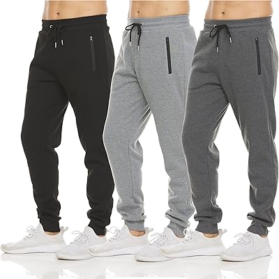 PURE CHAMP Mens 3 Pack Fleece Active Athletic Workout Jogger Sweatpants for Men with Zipper Pocket and Drawstring Size S-3XL