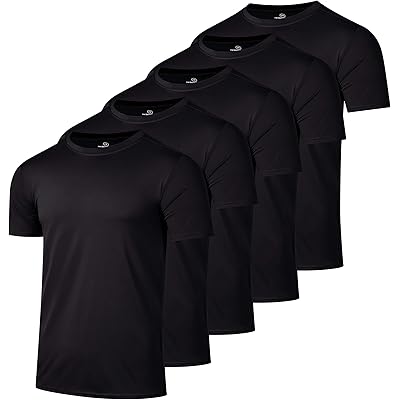 5 Pack Men’s Active Quick Dry Crew Neck T Shirts | Athletic Running Gym Workout Short Sleeve Tee Tops Bulk