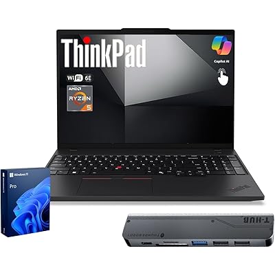Lenovo ThinkPad E16 Business Laptop, 16" FHD+ Anti-Glare Touchscreen, AMD Ryzen 5 7535U, 16GB DDR5, 512GB SSD, Wi-Fi 6E, Fingerprint, Backlit, Webcam, Windows 11 Pro, Bundle with 7-in-1 USB-C Hub
