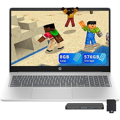 HP 15.6" HD Anti-Glare Chromebook Laptop, Intel Pentium N200, 8GB LPDDR5, 576GB Storage (64GB eMMC+512GB Docking Station Set), Intel UHD Graphics, Num Pad, 720p Camera, Wi-Fi 6, Chrome OS, Silver
