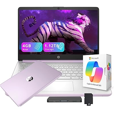 HP Flagship 14" HD Student&Business Laptop with AI Copilot, 13th Gen Intel 4-Core, 4GB RAM, 1.12TB Storage (128GB UFS + 1TB Docking Station), 1 Year Office 365, Wi-Fi 6, Win 11 S, Lavender Purple
