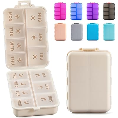 Holii Travel Pill Organizer, 8 Compartments Portable Pill Case, Daily Pill Box to Hold Vitamins, Small Pill Container for Pocket Purse Medicine Organizer(Khaki)