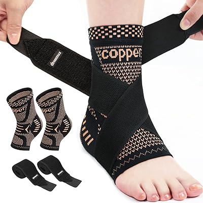INDEEMAX Ankle Brace for Women & Men, Ankle Compression Sleeve Support Copper Infused Ankle Brace for Sprained Ankle, Plantar Fasciitis Sports, Achilles Tendonitis Pain Relief, Copper Black, M