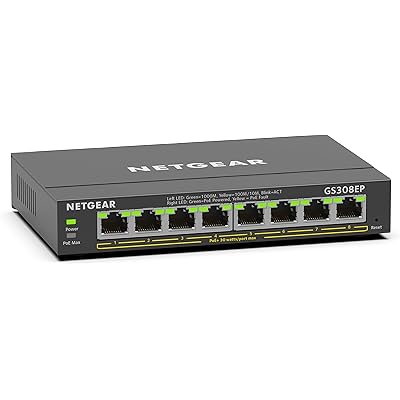 NETGEAR 8 Port PoE Gigabit Ethernet Easy Smart Managed Essentials Switch (GS308EP) - with 8 x PoE+ @ 62W, Desktop or Wall Mount