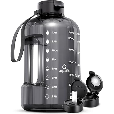 AQUAFIT 1 Gallon Water Bottle with Time Marker - Straw & Chug Lid - BPA Free Gym Water Bottle with Straw - Big Gallon Jug (Gray, 128 oz - 2 Lids)