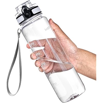 OLDLEY Water Bottle, 32oz Motivational Sports Water Bottle with Time Marker - Times to Drink - Tritan, BPA Free, Wide Mouth Leakproof, Clear (1 Bottle)
