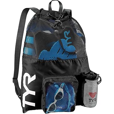 TYR Big Mesh Mummy Backpack for Swim, Gym and Workout Gear, Black, 40-Liter Capacity