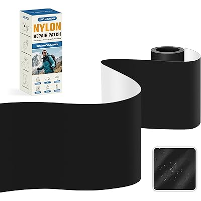 KING MOUNTAIN Self Adhesive Nylon Fabric Repair Tape, 4×63 Inches, Quick Down Jacket Repair Patch, Waterproof Outdoor Gear Patch Kit for Tent,Backpacks,Umbrella, Gloves, Sleeping Bag (Black)